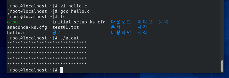 ./a.out 을 입력하면 실행 됨.