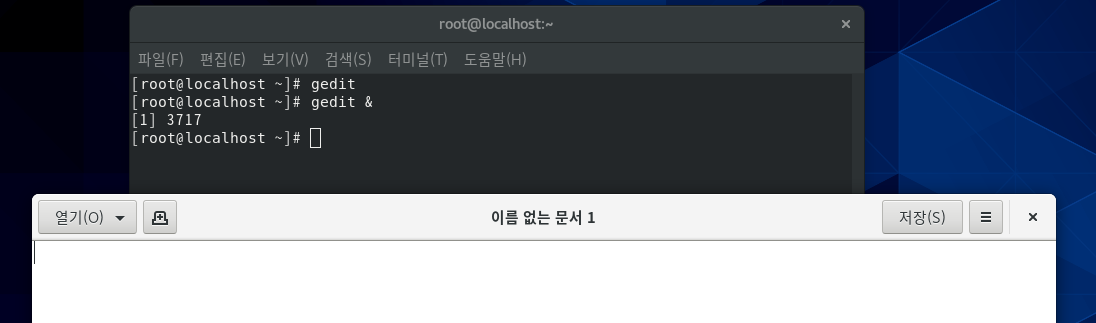 Ctrl+z로 일시중지 시키고, bg명령을 입력해서 잠시 중지된 프로세스를 백그라운드 프로세스로 계속 실행시킴