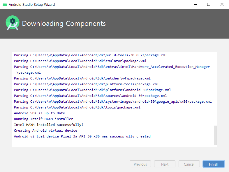 - Finish를 클릭하여 설치완료
