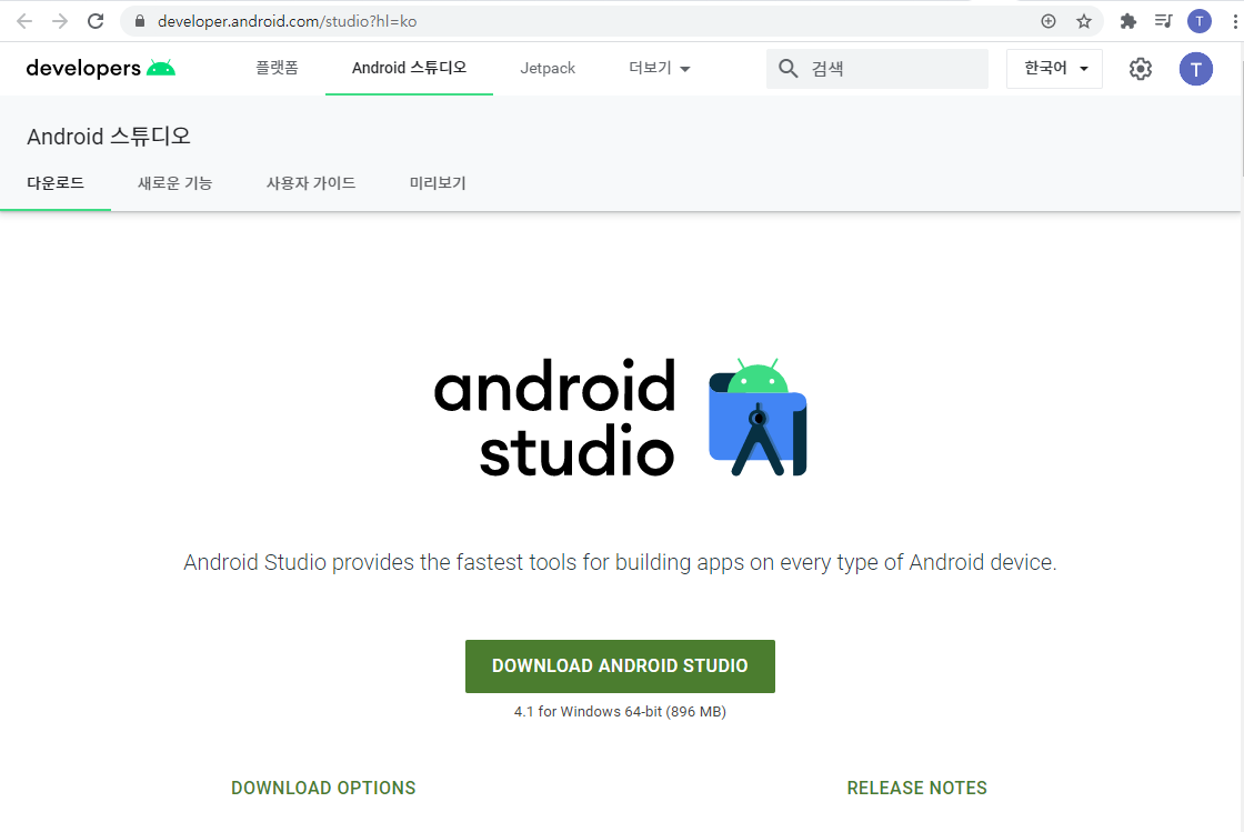 안드로이드 스튜디오 다운로드
