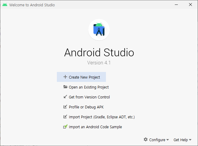 안드로이드 스튜디오 시작화면