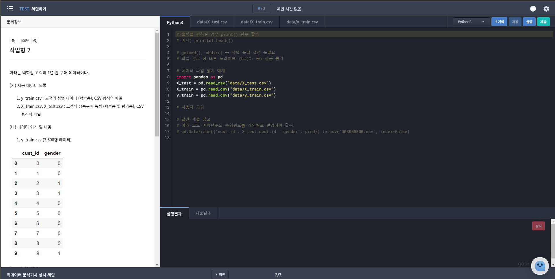 응시환경 체험하기처럼 나오는데 이번 시험에서는 y_train이 없었습니다.
